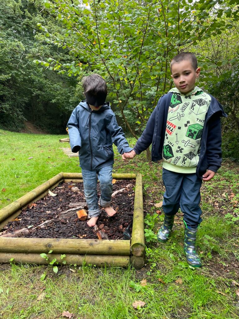 Nous avons également travaillé nos cinq sens, joué avec les jeux en bois et parcouru le sentier à pieds nus pour ceux qui ne l’avaient pas encore fait.