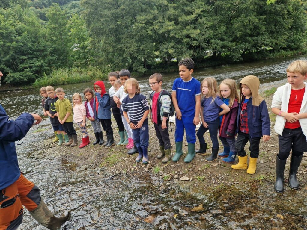Aujourd’hui, nous sommes tous allés au bord de la rivière pour tenter de déterminer si l’eau ici est propre ou polluée. Pour le savoir, nous avons mis les pieds dans l’eau et, avec nos épuisettes, nous avons capturé des poissons, des crevettes, des larves…