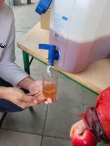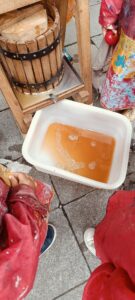 Notre récolte nous a permis de presser notre jus une fois rentrés à l’école.